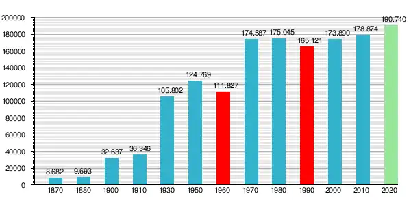W 2022 liczba mieszkańców wynosiła 191 857, z czego 18,2% stanowiły osoby poniżej 18. roku życia i 14,2% osoby powyżej 65. roku życia. Kobiety stanowiły 51,5% mieszkańców[1]. 72,1% ludzi było rasy kaukaskiej (85,1% w obszarze metropolitalnym). Czarnoskórzy stanowili 16,1% populacji, 6,4% było rasy mieszanej, 5,7% Latynosami i 1,6% to Azjaci[4]. Odsetek ludzi (głównego miasta) żyjących w biedzie wynosił 20,7%, podczas gdy średnia stanowa wynosiła 14%[1].