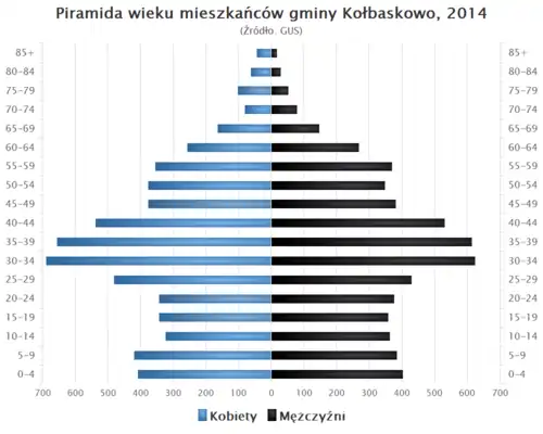 - Piramida wieku mieszkańców gminy Kołbaskowo w 2014 roku[3].