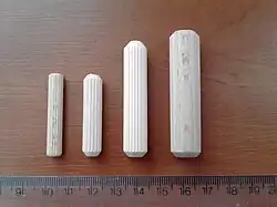 Kołki stosowane w meblarstwie mają kształt walcowy i są gładkie bądź karbowane (ryflowane). Najczęściej wytwarzane kołki mają średnicę od 5 mm do 16 mm.