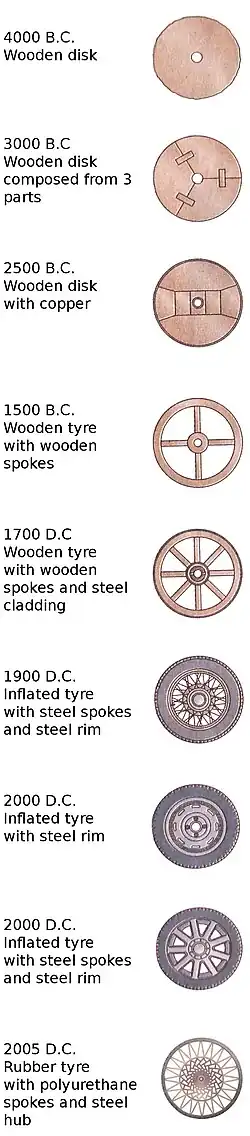 W XX wieku p.n.e. ze względu na konieczność zmniejszenia ciężaru zostały wynalezione koła szprychowe. Ich szerokie zastosowanie w lekkich wozach bojowych (rydwanach) prawdopodobnie przyczyniło się do sukcesów militarnych Ariów, wynalazek koła szprychowego przypisywany jest też indoeuropejskim Hetytom (na ich pieczęciach widnieją koła z czterema szprychami[2]).