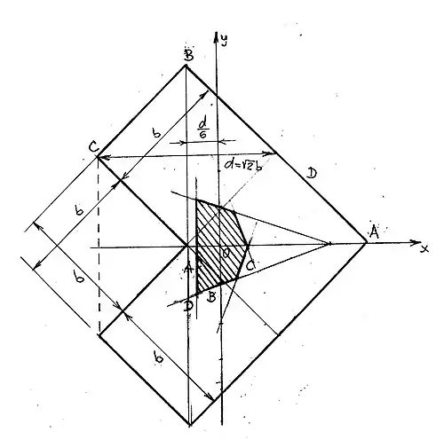 Jeżeli zbudujemy obwiednię konturu przekroju poprzecznego w postaci linii łamanej złożonej z odcinków stycznych do tego konturu, to z równania (1) wynika również, że każdemu wierzchołkowi obwiedni odpowiada prosta po której porusza się punkt gdy styczna obraca się wokoło wierzchołka