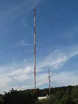 Na wzgórzu Lisica znajdują się maszty ośrodka radiowo-telewizyjnego. W latach 20. XX wieku wybudowano tam wieżę spadochronową. Po 1930 roku została ona przebudowana na cele widokowe, miała wysokości 36 m. W 1968 roku w jej miejscu stanęła 228-metrowa iglica stalowa z antenami RTV. W późniejszych latach dobudowano jeszcze antenę paraboliczną, a maszt podwyższono o kolejne 25 m. W roku 1985 wzniesiono nowy maszt o wysokości 267 m. W 1989 roku stary maszt skrócono do wysokości 61 m. Oba maszty stanowią dominantę całego mezoregionu Wzgórz Bukowych; są doskonale widoczne ze wszystkich stron w promieniu kilkunastu kilometrów[6].