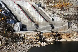 Zapora o wysokości 131 m i długości 760 m; pięć hydrozespołów o łącznej mocy 900 MW; średnia produkcja roczna 3325 mln kWh.