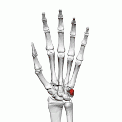 Kość grochowata (łac. os pisiforme) – jedna z ośmiu kości nadgarstka człowieka[1]. Położona jest w szeregu bliższym, po stronie łokciowej nadgarstka[1]. Różni się od pozostałych kości nadgarstka kształtem i mniejszym rozmiarem. Posiada również tylko jedną powierzchnię stawową[1]. Ma kształt jajowaty. Jej grzbietowa powierzchnia jest gładka i łączy się stawowo z powierzchnią dłoniową kości trójgraniastej. Powierzchnia dłoniowa dla odmiany jest chropowata i przyłączają się do niej: troczek zginaczy, więzadła kości grochowatej, mięsień zginacz łokciowy nadgarstka i mięsień odwodziciel palca małego[1]. Po stronie promieniowej kości znajduje się mały rowek, w którym biegnie gałąź dłoniowa nerwu łokciowego[1].