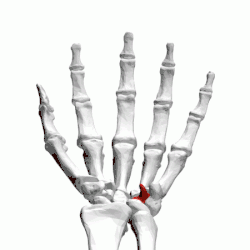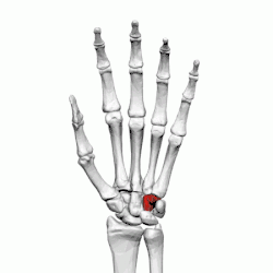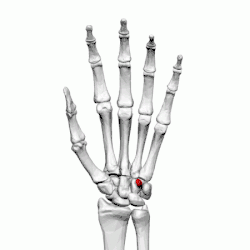 Kość haczykowata (łac. os hamatum) – jedna z ośmiu kości nadgarstka człowieka[1]. Nazwa kości pochodzi od charakterystycznego wyrostka kostnego w kształcie haczyka (łac. hamulus ossis hamati), który odchodzi z powierzchni dłoniowej. Kość haczykowata ma kształt klina i jak większość kości nadgarstka ma sześć powierzchni[1]. Powierzchnia bliższa (górna), czyli wierzchołek klina, jest gładka i wypukła. Jest ona połączona z kością księżycowatą. Powierzchnia dalsza (dolna) posiada nieco wklęsłe powierzchnie stawowe, którymi łączy się z IV i V kośćmi śródręcza. Powierzchnia łokciowa łączy się z kością trójgraniastą, a powierzchnia promieniowa łączy się z kością główkowatą. Do grzbietowej powierzchni przyłączają się więzadła, co powoduje że jest ona nierówna. Powierzchnia grzbietowa ma kształt trójkątny. Do haczyka znajdującego się na powierzchni dłoniowej przyłączają się troczek zginaczy nadgarstka, mięsień przeciwstawiacz palca małego i mięsień zginacz krótki palca małego[1].