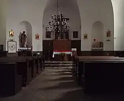 Pierwotnie świątynia drewniana[3]. Obecny kościół kamienny, barokowo-klasycystyczny, wzorowany na kościele Świętego Ducha w Bytomiu[3]. Prosty i surowy w formie, na planie ośmioboku, dach w formie dzwonowatej kopuły z sygnaturką[3].