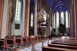 W kościele zainstalowano w 1941 organy firmy Rieger (na tabliczce napis: Opus 2985 Rieger), wyposażone w 31 głosy o trzech manuałach, wolnostojące piszczałki prospektowe, pneumatyczne traktury, wiatrownice stożkowe i rezerwuar: (główny zasobnik – miech pływakowy z jednym podawaczem oraz dwa miechy kompensacyjne)[4][5].