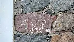 Ku pamięci Hermanna Brunona von Petersdorff urodzonego tutaj 20 czerwca 1844 roku porucznika w 3 Turyńskim Regimencie Piechoty nr 71, poległego na czele dowodzonego przez siebie oddziału podczas zwycięskiej operacji przeciwko wrogowi w dniu 22 lipca 1866 roku, w ostatniej godzinie walki pod Gamsenberg koło Pressburga. Jego zwłoki zostały pochowane przez jego kameradów na cmentarzu w Murchegg w Dolnej Austrii. Jego dusza odeszła do Boga, od którego przyszła i teraz jest pod jego opieką. Pamięć o nim żyje w sercach wszystkich, którzy go znali, nosił on bowiem w sobie pokój, radość, miłość i poczucie obowiązku, aż po dzień swojej śmierci[3].