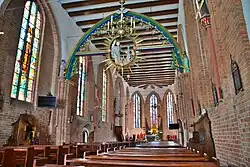 Jest to kościół należący do 1536 do zakonu augustianów. W latach 1536–1690 zamieniony na magazyn. W latach 1690–1945 protestancki, w latach 1959-1965 odbudowany po zniszczeniach wojennych, od 1974 parafialny. Wybudowany w stylu gotyckim w 1. połowie XIV wieku. Jest to świątynia jednonawowa. Zachodnia fasada posiada łukowate nisze i wieżyczki. Nawa posiada strop belkowy. Wewnątrz znajdują się gotyckie krużganki.