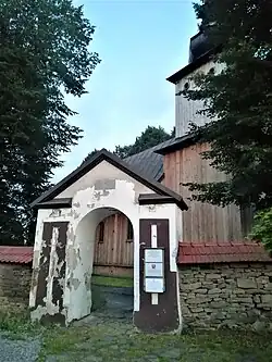 Dach kościoła pokryty jest ocynkowaną blachą. Świątynię otacza kamienny mur, wzniesiony w 1782[3].