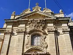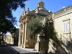 ![]() Kościół św. Bartłomieja w Tarxien. Widoczna fasada (po lewej) i półokrągło ścięty narożnik z bocznym wejściem. | |||||||||||||||
