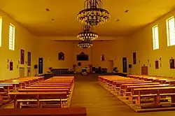 Jest to dawne poradzieckie kino, przebudowane i adaptowane na kościół w latach 1993–2010. W kompleksie znajduje się kaplica z wykonanym przez porucznika J. Zamojskiego w Neubrandenburgu w 1940 roku tryptykiem, przewiezionym w 1942 roku do oflagu II D Gross-Born, do 2008 roku tryptyk umieszczony był w kaplicy katedry polowej Wojska Polskiego w Warszawie, przekazany został parafii w 2008 roku przez biskupa polowego Wojska Polskiego Tadeusza Płoskiego. Kościół razem z plebanią są otoczone murem kamiennym, w 2009 roku została dobudowana wieża[1].