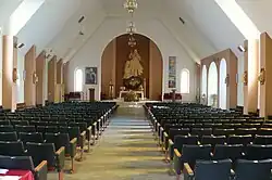 Przy kościele znajduje się pomnik siedzącego na głazach Jana Pawła II oraz krzyż misyjny (misje 1999 i 2011)[2].