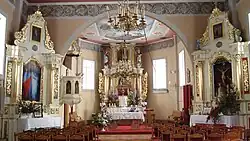 W lewym ołtarzu opatrzonym przywilejem za zmarłych rokokowy krucyfiks (2 poł. XVIII w.) oraz rzeźby Maryi Matki i św. Jana. W ołtarzu prawym – brackim św. Anny znajdują się obrazy: św. Anny oraz Miłosierdzia Bożego ufundowany przez tutejszą jednostkę w miejsce obrazu św. Antoniego z XVIII w. Na lewej ścianie świątyni XVIII-wieczny obraz św. Anny Samotrzeć. Wśród innych zabytków należy wymienić barokowy krucyfiks zdjęty z tęczy oraz rokokowy pacyfikał. Krucyfiks pogrzebowy – sztuka ludowa. Organy stare i nowe, dzwonnica z 1882 r. z 2 dzwonami. Droga krzyżowa –współczesna.