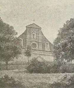 Parafia była erygowana zapewne pod koniec XIV wieku, choć według tradycji świątynia została wzniesiona w 1402 roku. Był to kościół murowany, orientowany, wybudowany w stylu gotyckim, znajdujący się na starym wzniesieniu, być może wczesnośredniowiecznym grodzisku. Około 1545 roku świątynia była restaurowana przez Erazma Kretkowskiego, kasztelana brzeskiego, z kolei uposażył ją biskup płocki Samuel Maciejowski herbu Ciołek. Na podstawie wizytacji z 1781 roku wiadomo, że w kościele znajdowały się cztery ołtarze. Budowla była kilkakrotnie remontowana w latach: 1821, 1900–1903 przez księdza Stanisława Dembińskiego oraz ponownie w 1956 roku.