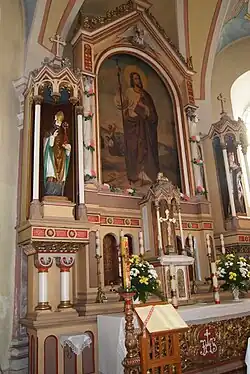 - znajdujący się na ołtarzu głównym, obraz św. Rodziny pochodzący z przełomu XVIII i XIX wieku,