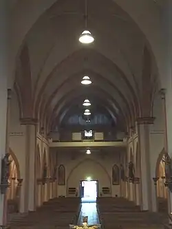 Główne wejście do kościoła znajduje się w dzwonnicy od strony zachodniej.