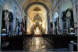 - ołtarz św. Ignacego z 1714 z obrazem Johanna Veita Haucka z 1732[1] oraz z rzeźbami wykonanymi przez Angela de Putti[2],
