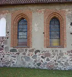 Budowla posiada cechy gotyckie (przypory, blendy we wschodniej elewacji oraz w wieży, które zwieńczone są sterczynami). Cechą wyróżniającą ten kościół są charakterystycznie profilowane tynkowane blendy ujęte arkadkowo w schodkowym szczycie ze sterczynami oraz wystrój wschodniej elewacji[3].