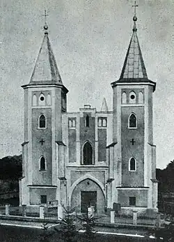 Świątynia zbudowana jest w duchu historyzmu, łączy w sobie różne style. Bryła budynku jest neogotycka. Fasadę zdobią dwie symetryczne wieże. Kościół został otynkowany na początku lat 90. XX wieku. W 2005 roku przeprowadzono remont sklepienia i dachu, w ramach przygotowań do przypadającego rok później jubileuszu 400 lat istnienia parafii. Wieże zostały pokryte miedzią oraz ozdobiono je zegarami z kurantami. Każda z nich ma 5 kondygnacji. Została zbudowana trzecia, mniejsza wieża na sygnaturkę, znajdująca się w miejscu centralnym dachu. W kolejnych latach odrestaurowano wewnętrzną polichromię.