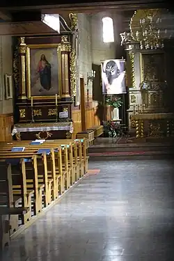 - ołtarz Matki Bożej Różańcowej - znajdują się w nim trzy obrazy: Józef z Dzieciątkiem, Matka Boża Różańcowa, oraz Jan Nepomucen.