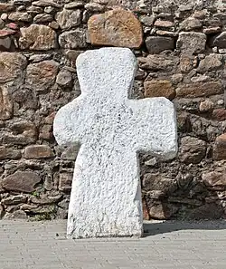 Teren kościoła i cmentarz przykościelny od strony zachodniej i wschodniej otacza mur ceglany. W najstarszej części cmentarza (przy bramie południowej) dobrze zachowane niemieckie groby w początków XX w. Przed bramą południową, od strony ulicy późnośredniowieczny (XIV lub XVI-wieczny) granitowy monolityczny krzyż (prawdopodobnie krzyż pojednania, pokutny) oraz kamienna figura św. Jana Nepomucena z roku 1801. Brak zachowanych źródeł potwierdzających powód fundacji tego krzyża.