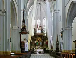 Wymiary: długość kościoła – 47,53 m, wysokość sklepienia – 20,4 m, wysokość wieży – 60 m, szerokość kościoła 12,5 m.