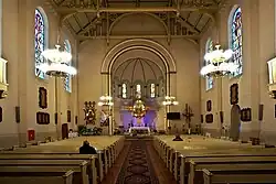 W świątyni umieszczony jest obraz Chrystus Ukrzyżowany, namalowany przez C. Gregera w 1873 roku[1]. W 2006 roku obiekt został wpisany do rejestru zabytków[2].