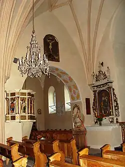 - W kruchcie jest umieszczony gotycki krucyfiks z XVI wieku.