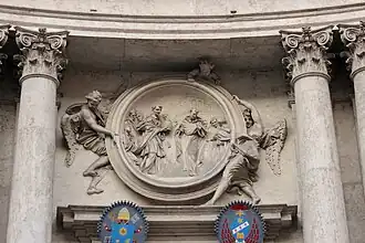Fasada kościoła powstała w latach 1682–1686 według projektu Carlo Fontana[2]. Figury w górnej części fasady zostały umieszczone w 1701 roku[2].