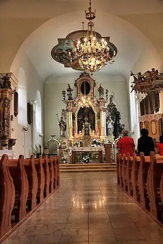 Antepedium ołtarza głównego ukazuje wieczerzę w Emaus. Przy głównym ołtarzu znajduje się obraz św. Marcina oddającego płaszcz żebrakowi.