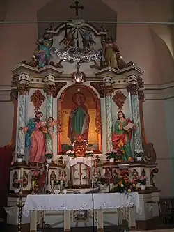 Obraz św. Marcina, który się znajduje na głównym ołtarzu został namalowany przez Ferdinanda Wintera. Po obu stronach obrazu znajdującego się na głównym ołtarzu przedstawione zostały figury ewangelistów Mateusza i Jana. Nad obrazem znajduje się Trójca Święta, z figurami przedstawiającymi Marka i Łukasza.