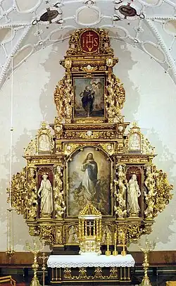 W wykonanym przez włoskich artystów wczesnobarokowym bądź późnorenesansowym ołtarzu głównym z 1649 znajduje się namalowany w 1749 przez Wacława Graffa obraz św. Mateusza[2][3]. Towarzyszy mu kopia obrazu Murilla Wniebowzięcie Najświętszej Maryi Panny, namalowana w 1929[2]. W polach bocznych ołtarza znajdują się rzeźby świętych Piotra i Pawła.