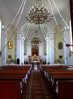 Kościół jest późnobarokowy, orientowany, jednonawowy, z wydzielonym prezbiterium i kwadratową czterokondygnacyjną wieżą od zachodu. Wewnątrz wyposażenie neogotyckie przywiezione w 1945 przez repatriantów z kościoła Wniebowzięcia Najświętszej Marii Panny w Nawarii obok Lwowa:
