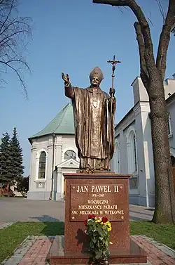 Na terenie przykościelnym zlokalizowany jest pomnik upamiętniający pontyfikat papieża Jana Pawła II. Został odsłonięty i poświęcony 2 kwietnia 2008, w 3 rocznicę śmierci papieża, przez arcybiskupa metropolitę gnieźnieńskiego Henryka Muszyńskiego.