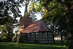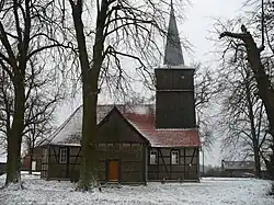 Świątynia wzniesiona została w 1648 roku i zastąpiła wcześniejszy, istniejący prawdopodobnie już w XIII wieku, pierwotnie rzymskokatolicki kościół, który w okresie reformacji przeszedł w ręce protestantów. Obecny kościół zbudowano w konstrukcji ryglowej, wypełnionej gliną i sieczką, a na początku XIX wieku dobudowano do niego zakrystię od strony północnej i kruchtę od strony południowej. Po II wojnie światowej obiekt powrócił w ręce kościoła rzymskokatolickiego, a w następnych latach przeszedł kilka remontów, w tym wymianę konstrukcji z gliniano-trzcinowej na ceglaną.