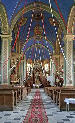 Obecny murowany kościół został wybudowany w stylu neogotyckim w latach 1897-1902, konsekrowany w 1905 roku przez biskupa wileńskiego Edwarda von Roppa. Poprzednia świątynia drewniana została rozebrana przez wiernych, ponieważ obawiali się, że nowa świątynia zostanie przekazana mniszkom prawosławnym, natomiast stara pozostanie w ich rękach. W dwudziestoleciu międzywojennym powstały dwa nowe ołtarze i odnowiono wnętrze świątyni[2].