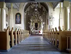 Jest to świątynia poewangelicka, wzniesiona w latach 1910-1911. Wybudowana została na miejscu wcześniejszych protestanckich kościołów, stawianych i rozbieranych wielokrotnie od XVI wieku. Obecna budowla, należąca obecnie do katolików, nawiązuje swoim kształtem do wcześniejszej. Świątynia jest murowana i otynkowana, orientowana, zbudowana została na planie prostokąta; jej korpus tworzy jedna nawa – od strony wschodniej jest dostawione do niego prostokątne prezbiterium, natomiast od strony zachodniej wieża[2].