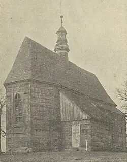 Stary kościół drewniany został rozebrany w 1910 roku pod budowę nowego kościoła. Z drewna pozyskanego z rozbiórki, zbudowano w 1911 roku obszerną wikarówkę. Od strony placu kościelnego front budynku miał 4 okna i obszerny ganek. Wikarówka dotrwała do 1990 roku. Na jej miejscu po splantowaniu terenu obecnie istnieje parking.