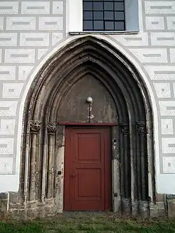 Cenne są portale: północny z końca XIII wieku, ostrołukowy z półkolumnami, południowy z przełomu XV i XVI wieku, a także zachodni (wieżowy), z łukiem odcinkowym i z neogotyckimi sterczynami nałożonymi na elewację[2].
