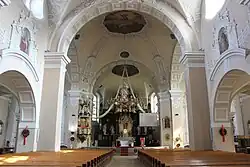Wyposażenie budowli pochodzi częściowo z poprzedniego kościoła. Należą do niego m.in. barokowy ołtarz główny wykonany przez wrocławskiego artystę Jana Krzysztofa Königera, ołtarze boczne, ambona a także obrazy[2].