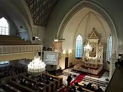 Kościół zbudowany jest na planie greckiego krzyża o cechach neogotyckich. 50-metrowa wieża z głównym wejściem obramowanym portalem ostrołukowym, na wysokości nawy ujęta jest uskokową attyką a ukończona jest dachem ostrosłupowym z przenikającymi naczółkami. Wystrojem fasady o szerokości ponad 24 metrów są potrójne wysokie okna, ostrołukowe portale, trójdzielne arkadowe przeźrocza, powtarzający się motyw pilastego fryzu pod gzymsami. We wnętrzu, w prezbiterium znajdują się ołtarz autorstwa Henryka Nitry z Dolnych Błędowic oraz tablica pamiątkowa poświęcona ks. superintendentowi Józefowi Bergerowi, pierwszemu i długoletniemu pastorowi. Przed tęczą po lewej stronie na wysokości pierwszej pawłaczy znajduje się ambona.
