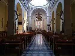 Kościół ma bardzo innowacyjną strukturę w stosunku do innych budynków miasta. Wzniesiony na planie krzyża, z dużą jak na tamte czasy kopułą. Projektantem był lwowianin Witold Rawski. Pod kościołem znajduje się kompleks małych sal, które były miejscem spotkań stowarzyszeń i bractw. Budowli nie można jednoznacznie zaliczyć do jednego stylu architektonicznego, jednak posiada liczne znamiona secesji.