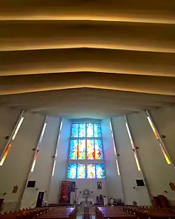 Obecną świątynię wybudowano na osi północ-południe. Ma dwie kondygnacje. W świątyni górnej ołtarz skierowany jest ku północy, w dolnej ku południowi. W ołtarzu dolnej kondygnacji, która spełnia rolę kaplicy, znajduje się ikona Matki Boskiej Nieustającej Pomocy, uratowana w 1944 r. z płonącego po bombardowaniu kościoła.