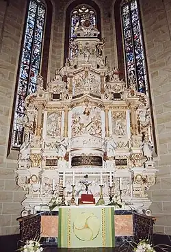 Cennym elementem wyposażenia jest także wysoka na 10 m, wykonana z piaskowca nastawa ołtarzowa i podziwiana przez Goethego chrzcielnica z 1561, pokryta 26 małymi figurkami dzieci.