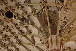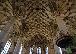 Pod koniec budowy, w latach 1539–1546, kościół został przekryty sklepieniem sieciowym. Samonośna konstrukcja więźby dachowej została tak pomyślana, iż nie obciąża znajdującego się pod nią sklepienia, które dzięki temu zostało ukształtowane jako jedyne w swoim rodzaju i – pozbawione funkcji statycznej – służy włącznie celom dekoracyjnym. To imponujące dzieło cechuje rozmaitość form żeber. Sklepienie zawiera ryzykowne konstrukcyjnie i swawolne artystycznie elementy jak np. Wystające, spiralne łęki sklepienne rzeźbione w drewnie oraz dwa ornamenty gałęziowe. Nad prezbiterium znajduje się jedyne w swoim rodzaju sklepienie mające za motyw dekoracyjny rybi pęcherz. W apsydzie sklepienie podtrzymuje bogato opracowana w piaskowcu rzeźba pary ludzkiej, „dzikiego mężczyzny i dzikiej kobiety” (niem. „Wilder Mann und Wilde Frau“). W dalszej części sklepienia żebra krzywobieżne przeplatają się z sieciowymi. Z okresu budowy kościoła (1544-1546) pochodzą malowidła figuralne na sklepieniach, o już protestanckiej proweniencji, przedstawiające różne sceny biblijne, klejnot malarstwa sakralnego epoki reformacji.
