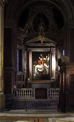 Druga kaplica po prawej stronie poświęcona jest Matce Bożej Bolesnej. Dawniej w ołtarzu było Złożenie do grobu Caravaggio z 1602-04 roku, dzieło to zostało jednak zagrabione w 1797 roku podczas okupacji francuskiej, natomiast w późniejszym czasie nie wróciło na pierwotne miejsce, tylko trafiło do Muzeów Watykańskich. Obecnie w ołtarzu znajduje się kopia pędzla Michele Koeck[2]. Kaplica ozdobiona jest freskami Angelo Caroselli: Całun oraz Pietà z Dawidem i Izajaszem[3].