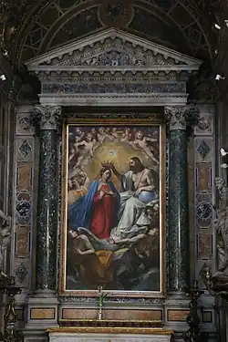 Kaplica Koronacji Matki Bożej jest zlokalizowana w prawym ramieniu transeptu. Powstała ona w 1591 roku dla nuncjusza apostolskiego w Neapolu Alessandro Glorieri[3]. W ołtarzu umieszczono obraz Cavalier d’Arpino Koronacja Matki Bożej z 1615 roku. W niszach stoją figury Św. Jan Chrzciciel i Św. Jan Ewangelista dłuta Flaminio Vacca z 1594 roku[2].