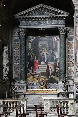 Kaplica w lewym ramieniu transeptu poświęcona Ofiarowaniu Najświętszej Maryi Panny została zbudowana w 1589 roku z fundacji biskupa Angelo Cesi[3]. W ołtarzu umieszczono obraz autorstwa Federico Barocciego z 1603 roku. Fresk na sklepieniu przedstawia Annę, Elkanę i Samuela, jest to dzieło Alessandro Salucciego. Alegorie ze stiuku Wiary i Nadziei są autorstwa Cosimo Fancelli i Ercole Ferrata. Ponadto umieszczono tu dwie figury św. Piotra i Pawła autorstwa Giovanniego Antonio Paracca[2].
