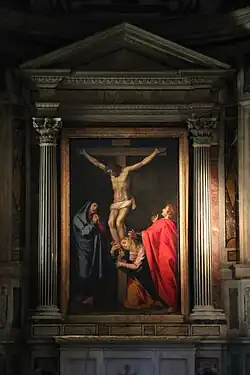Kaplica Ukrzyżowania jest to pierwsza kaplica po prawej stronie. W ołtarzu znajduje się dzieło Scipione Pulzone Ukrzyżowanie z 1586 roku, natomiast autorem malowideł na sklepieniu był Giovanni Lanfranco: Nałożenie korony cierniowej, Biczowanie i Modlitwa w Ogrójcu[3].